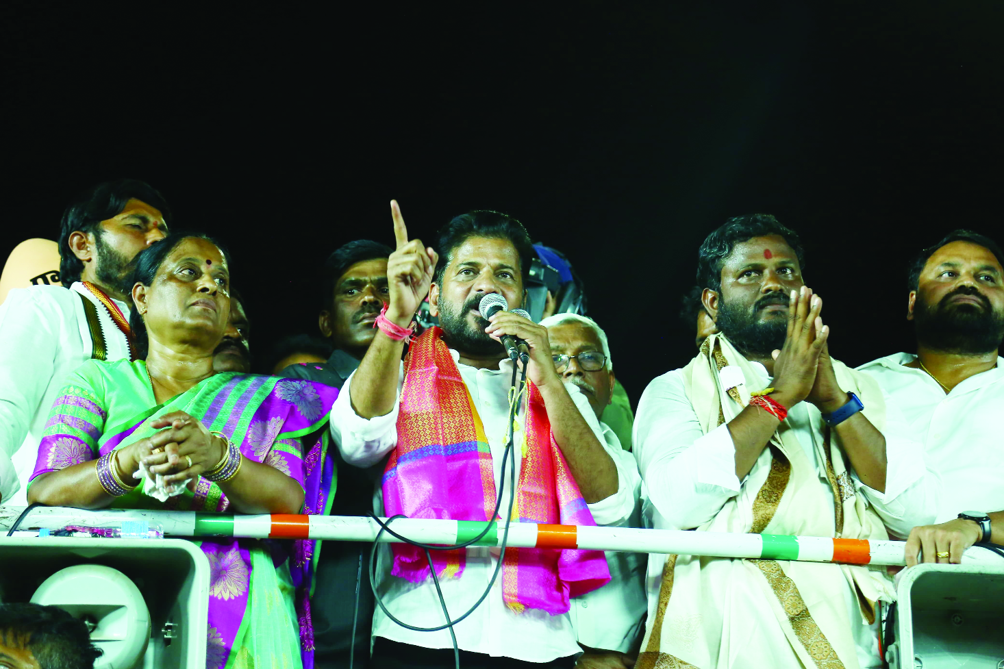 కాంగ్రెస్ హయాంలో రాష్ట్రానికి సోనియా గాంధీ బయ్యారం ఉక్కు కర్మాగారం, వరంగల్కు రైల్వే కోచ్ ఫ్యాక్టరి, యూనివర్సిటీలు, ఐటిఆర్, ఐఐటి, ఐఐఎం ఇస్తే బిజెపి ప్రధానమంత్రి నరేంద్రమోదీ మాత్రం తెలంగాణకు గాడిద గుడ్డు ఇచ్చాడని సిఎం రేవంత్రెడ్డి ప్రధానమంత్రిపై తనదైనశైలిలో విమర్శలు చేశారు. వొచ్చిన వంద రోజుల్లో 5 గ్యారంటీలు అమలు చేశ్న్నామని, తెలంగాణకు వొచ్చి ప్రధాని మోదీ తనను తిట్టిపోయాడని, ప్రధాని నరేంద్ర మోదీ తెలంగాణకు ఇచ్చింది గాడిద గుడ్డు అని, తెలంగాణకు ఏమీ ఇవ్వని బీజేపీకి కర్రు కాల్చి వాత పెట్టాలని రేవంత్ పిలుపునిచ్చారు. ఈ మీటింగ్లో మంత్రి కొండా సురేఖ, టిజేఏసి ఛైర్మన్ ప్రొఫెసర్ కోదండరామ్, ఎంపి అభ్యర్థి నీలం మధు ముదిరాజ్, కాంగ్రెస్ ఇంఛార్జి పూజల హరికృష్ణ తదితరులు మాట్లాడారు. ఈ కార్నర్ మీటింగ్లో డిసిసిబి ఛైర్మన్ చిట్టి దేవేందర్రెడ్డి, డిసిసి అధ్యక్షుడు తూంకుంట నర్సారెడ్డి, మాజీ ఎమ్మెల్యే మైనంపల్లి హన్మంతరావు, సంగారెడ్డి జిల్లా కాంగ్రెస్ అధ్యక్షురాలు తూర్పు నిర్మల జగ్గారెడ్డి, ఎలక్షన్రెడ్డి, కాట శ్రీనివాస్గౌడ్, సిద్దిపేట ఇంఛార్జి పూజల హరికృష్ణ, ఏఐసిసి నాయకుడు సురేష్, నాయకులు అద్దంకి దయాకర్, తాడూరి శ్రీనివాస్గౌడ్, చెరుకు శ్రీనివాస్రెడ్డి, గంప మహేందర్రావు, దేవులపల్లి యాదగిరి, దరిపల్లి చంద్రం, గూడూరు శ్రీనివాస్, చక్రధర్గౌడ్ తదితరులు పాల్గొన్నారు. కార్నర్ మీటింగ్కు ముందు కొత్త బస్టాండ్ మీదుగా పాత బస్టాండ్ వరకు రోడ్ షో నిర్వహించారు. ఈ రోడ్ షోలో కాంగ్రెస్ పార్టీ శ్రేణులు పెద్ద సంఖ్యలో పాల్గొన్నారు.