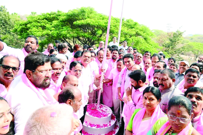 కేసీఆర్ నడిపిన తెలంగాణ ఉద్యమం దేశంలోని అనేక రాష్ట్రాలకు, పార్లమెంటరీ ప్రజాస్వామ్యంలో ప్రజాస్వామిక ఉద్యమాలకు ఒక దిక్సూచిగా, ఆదర్శంగా నిలిచిందని చెప్పారు. ఈ సందర్భంగా తెలంగాణ భవన్లో పార్టీ జెండాను కేటీఆర్ ఆవిష్కరించారు. అనంతరం మాట్లాడుతూ.. తెలంగాణ ప్రజల సహకారంతోనే రాష్ట్రం సాకారమయిందని, పార్టీ తరఫున ఏమిచ్చినా వారి రుణం తీర్చుకోలేమన్నారు. సమైక్యవాద శక్తుల కుట్రలను ఛేదించి తెలంగాణ ప్రజల గొంతుకను అన్ని చట్టసభల్లో టీఆర్ఎస్ (బీఆర్ఎస్) వినిపించిందని చెప్పారు. సాధించుకున్న తెలంగాణకు సరైన నాయకత్వం కేసీఆర్దే అని 2014లో తమ పార్టీకి ప్రజలు అవకాశం ఇచ్చారని చెప్పారు. తొమ్మిదిన్నర సంవత్సరాల పరిపాలనలో దేశంలోనే తెలంగాణ రాష్ట్రాన్ని అగ్రస్థానంలో నిలిపేందుకు, అన్ని రంగాలలో అభివృద్ధి చేసేందుకు అహర్నిశలు కృషి చేశామని వెల్లడిరచారు.