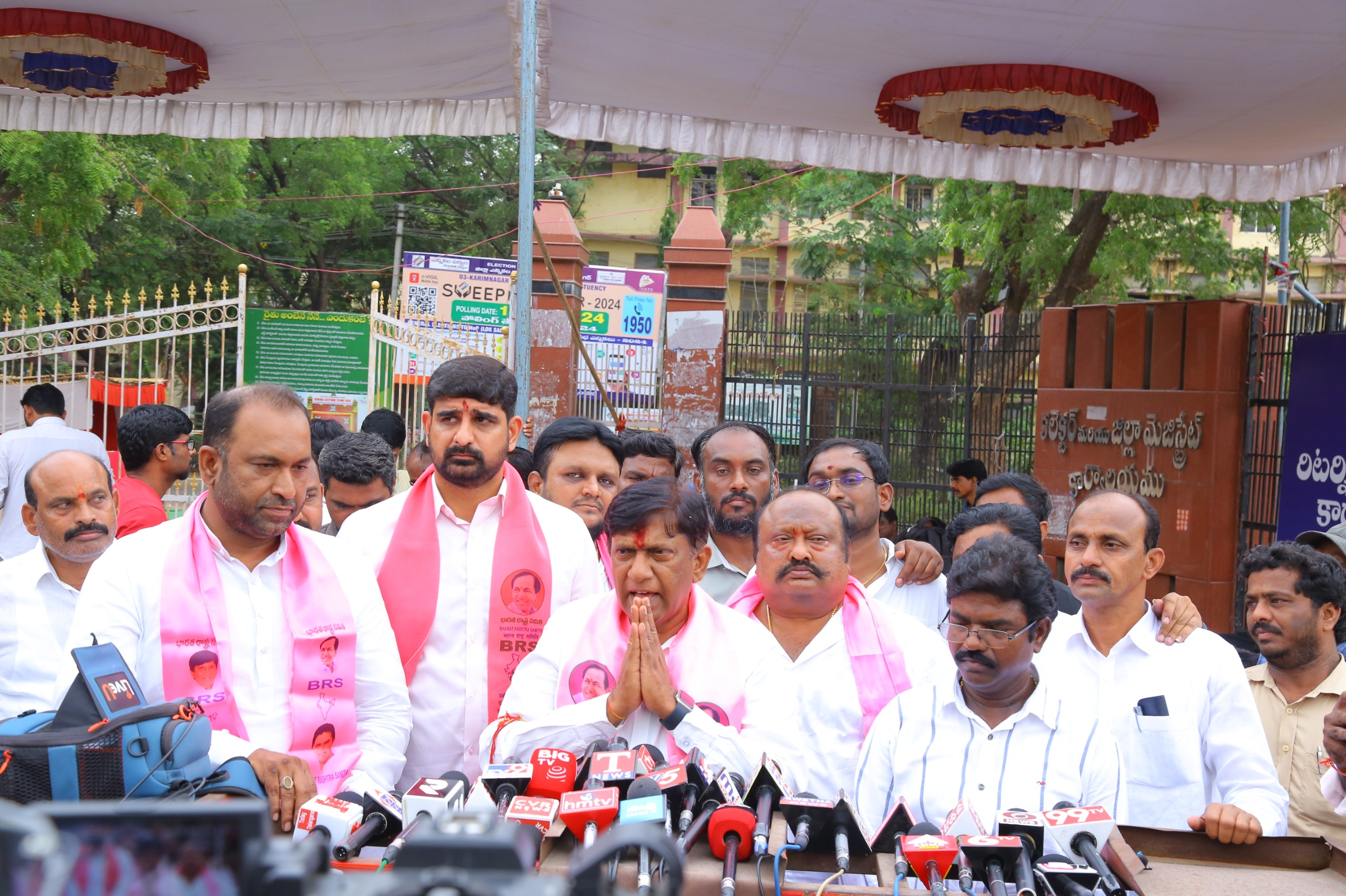 పార్లమెంట్ ఎన్నికల్లో కాంగ్రెస్, బీజేపీ లు ఒక్కటయ్యాయని… ఇప్పటి వరకు కాంగ్రెస్ కరీంనగర్ ఎంపీ అభ్యర్థినే ప్రకటించకపోవడం దేనికి సంకేతమని కరీంనగర్ బీఆర్ఎస్ ఎంపీ అభ్యర్థి బోయినపల్లి వినోద్ కుమార్ అన్నారు. కరీంనగర్ కలెక్టరేట్ లో బీఆర్ఎస్ ఎంపీ అభ్యర్థిగా ఎమ్మెల్యేలు గంగుల కమలాకర్, పాడి కౌశిక్ రెడ్డి, మాజీ ఎమ్మెల్యే రసమయి బాలకిషన్, మైనారిటీ నాయకుడు జమీల్ గార్లతో కలిసి నామినేషన్ దాఖలు చేశారు. అనంతరం మీడియా తో మాట్లాడుతూ… గత ఎన్నికల్లో కాంగ్రెస్ అబద్దాలు చెప్పి అధికారంలోకి వచ్చిందని…ఆరు గ్యారెంటీల పేరుతో ప్రజలను కాంగ్రెస్ మోసం చేసిందని.. ఈ అబద్దాల కాంగ్రెస్ ను పార్లమెంట్ ఎన్నికల్లో ప్రజలు బంగాళాఖాతంలో కలపాలని పిలుపునిచ్చారు. ప్రచార అస్త్రాలు..గారడీ మాటలతో మోసం చేస్తున్న బీజేపీ కి ప్రజలు గుణపాఠం చెప్పాలన్నారు. దేశంలో ఇతర రాష్ట్రాలకు 150 మెడికల్ కళాశాలలు మంజూరు చేసిన బీజేపీ కేంద్ర ప్రభుత్వం తెలంగాణ కు మాత్రం ఒక్క మెడికల్ కళాశాల ఇవ్వలేదన్నారు.