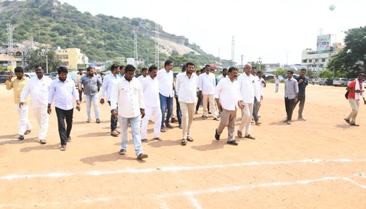 కాలేజీ గ్రౌండ్ సభా స్థలాన్ని పరిశీలించిన ఎమ్మెల్యే:సీఎం కేసీఆర్ భువనగిరి వేదికగా భారీ బహిరంగ సభతో ఈనెల 16న ఎన్నికల శంఖారావం పూరించనున్నారు. ఈ సందర్భంగా మంగళవారం భువనగిరి ఎమ్మెల్యే పైళ్ల శేఖర్ రెడ్డి ప్రభుత్వ జూనియర్ కళాశాల గ్రౌండ్ సభా స్థలిలో ఏర్పాట్లను పరిశీలించారు.