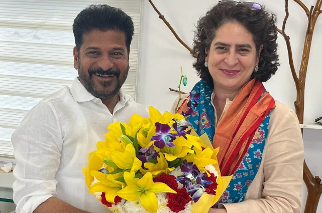 Revanth Reddy, Priyanka Gandhi, Sonia Gandhi, Congress