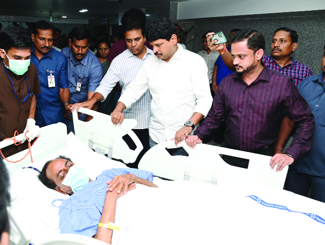 మాజీ ముఖ్యమంత్రి కేసీఆర్ గురువారం అర్ధరాత్రి ఫామ్ హౌస్ బాత్ రూమ్లో జారి పడటంతో ఆయన తొంటికి తీవ్ర గాయమైంది. దీంతో కుటుంబ సభ్యులు ఆయనను సోమాజిగూడ యశోద హాస్పిటల్కి తరలించారు. ప్రస్తుతం అక్కడ కేసీఆర్కు చికిత్స కొనసాగుతున్నది. కేసీఆర్ ఆరోగ్య పరిస్థితి తెలుసుకున్న ముఖ్యమంత్రి రేవంత్ రెడ్డి కేసీఆర్ ఆరోగ్య పరిస్థితిని తెలుసుకోవాలని, యశోదా హాస్పిటల్ వద్ద భద్రత పెంచాలని అధికారులను ఆదేశించారు. ముఖ్యమంత్రి ఆదేశాల మేరకు ఆరోగ్యశాఖ కార్యదర్శి రిజ్వి యశోద హాస్పిటల్కు వెళ్లారు. అక్కడ వైద్యులను అడిగి కేసీఆర్ ఆరోగ్య పరిస్థితి గురించి వైద్యాధికారులను అడిగి తెలుసుకున్నారు. కేసీఆర్ ఆరోగ్యం నిలకడగా ఉందని హెల్త్ సెక్రటరీకి యశోద వైద్యులు తెలియజేశారు. కేసీఆర్కు మెరుగైన వైద్య చికిత్స అందించాలని అధికారులకు సీఎం రేవంత్ రెడ్డి సూచించారు. గ్రీన్ ఛానల్ ఏర్పాటు చేసి ట్రాఫిక్ క్లియరెన్స్తో కేసీఆర్ను పోలీస్ అధికారులు హాస్పిటల్కి తరలించారు.