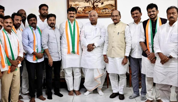 బీఆర్ఎస్ పై అసమ్మతతో నకిరేకల్ మాజీ ఎమ్మెల్యే వేముల వీరేశం గురువారం ఢిల్లీలో మల్లిఖార్జున్ ఖర్గే సమక్షంలో కాంగ్రెస్ పార్టీలో చేరారు. ఆయనతో పాటు మల్కాజిగిరి గిరి ఎమ్మెల్యే మైనం పల్లి హన్మంత రావు సైతం కాంగ్రెస్ కండువా కప్పుకున్నారు.