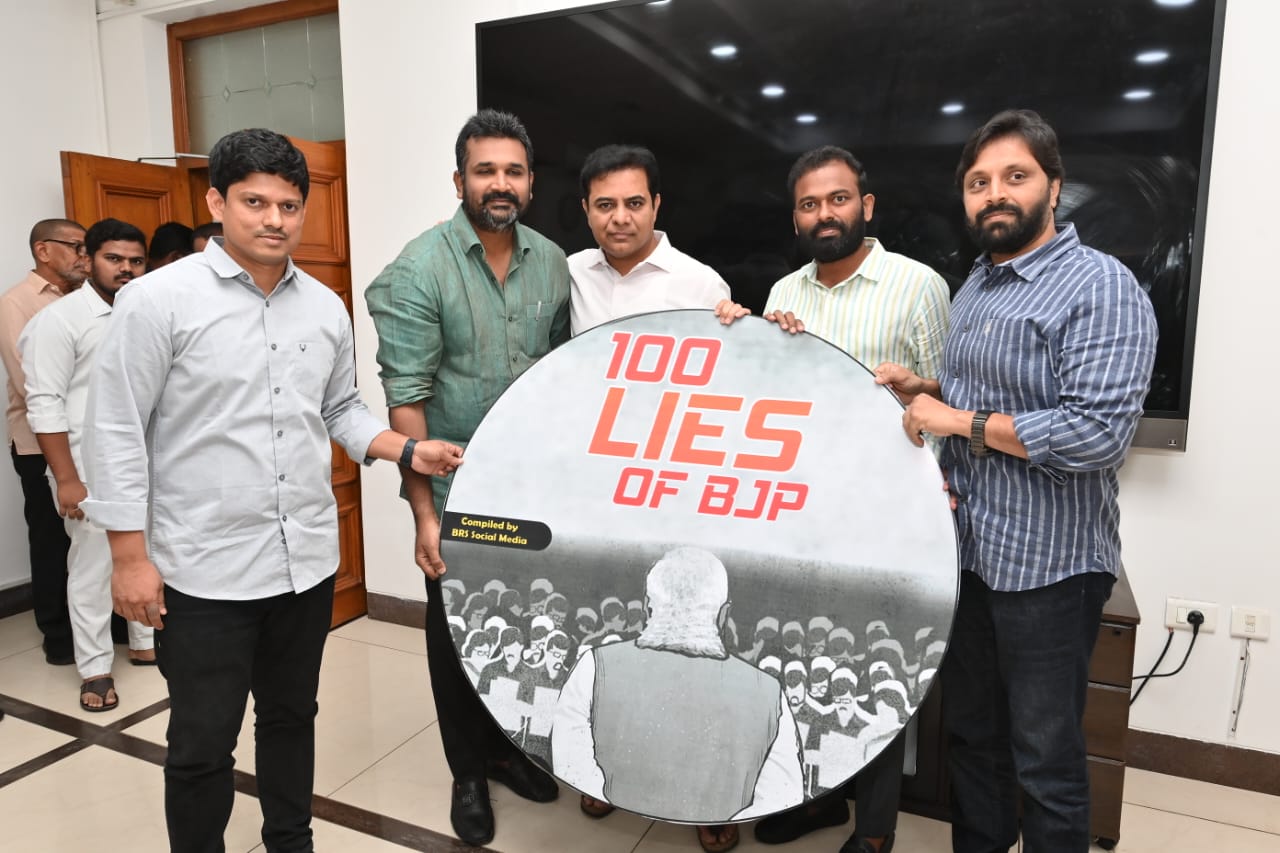బీజేపీ తప్పులను ప్రతీరోజు బయటపెడుతున్నారు. నిరుద్యోగం, ద్రవ్యోల్బణం, భారంగా మారిన జీఎస్టీ, ప్రతీ ఇంటికి ఇంటర్నెట్ సదుపాయం, అందరికీ ఇల్లు, విభజన హామీల అమలు, బయ్యారం స్టీల్ ప్లాంట్, ఐటీఐఆర్, కాజీపేట కోచ్ ఫ్యాక్టరీ, ఎస్టీ రిజర్వేషన్లతో పాటు.. బీజేపీ నాయకుల అసలు రూపాన్ని ఈ క్యాంపెయిన్ లో బయటపెట్టడం జరిగింది.సోషల్ మీడియా కన్వీనర్లు చేపట్టిన “బీజేపీ వంద అబద్దాలు” క్యాంపెయిన్ ను మంత్రి కేటీఆర్ అభినందించారు. అబద్దాల పునాదుల మీద రాజకీయం చేస్తున్న బీజేపీ అసలు రూపాన్ని ప్రజల ముందు ఉంచారన్నారు. బుక్ లెట్, సీడీ ద్వారా బీజేపీ తప్పులను, వైఫల్యాలను మరింతగా ప్రజల్లోకి తీసుకెళ్లి వాస్తవాలను గ్రామీణ ప్రాంతాల్లోని ప్రజలకు తెలిసేలా చేయాలని వారికి సూచించారు. ఈ కార్యక్రమంలో ఎమ్మెల్యే వివేకానంద్ గౌడ్, ఎంపీ బీబీ పాటిల్ పాల్గొన్నారు.