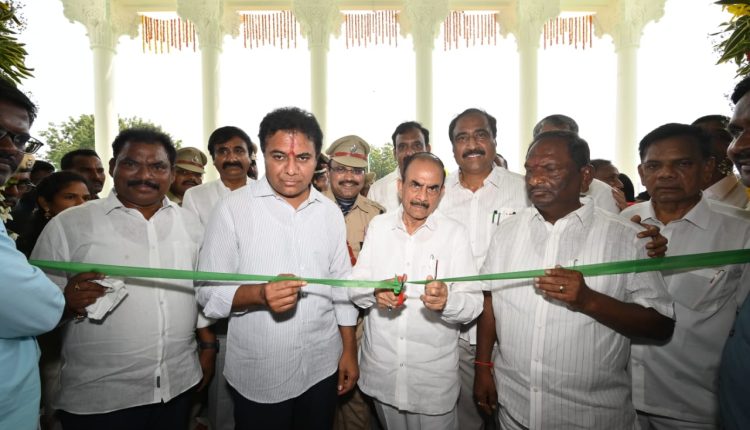 జగిత్యాల జిల్లా కేంద్రంలో నూతనంగా రూ.38.4 కోట్లతో నిర్మించిన జిల్లా పోలీస్ కార్యాలయ భవనాన్ని హోమ్ మినిస్టర్ మహమూద్ అలీ, రాష్ట్ర సంక్షేమ శాఖ మంత్రి కొప్పుల ఈశ్వర్ లతో కలిసి మంత్రి కే.టి.ఆర్. ప్రారభించారు. అనంతరం మల్యాల మండలంలోని నూకపల్లి గ్రామంలో రూ. 280 కోట్లతో నిర్మించిన జగిత్యాల పట్టాణ డబుల్ బెడ్ రూం ఇండ్లలో మొదటి దశలో పట్టణంలోని 3722 మంది నిరుపేద లబ్దిదారులకు ఇళ్ళ పట్టాలు పంపిణి చేసి, గృహ ప్రవేశ కార్యక్రమంలో పాల్గొన్నారు. జగిత్యాల పట్టణంలోని వ్యవసాయ మార్కెట్ లో రూ. 4.50 కోట్లతో నిర్మించిన సమీకృత వెజ్ – నాన్ వేజ్ మార్కెట్ లను మంత్రులు ప్రారంబించారు.