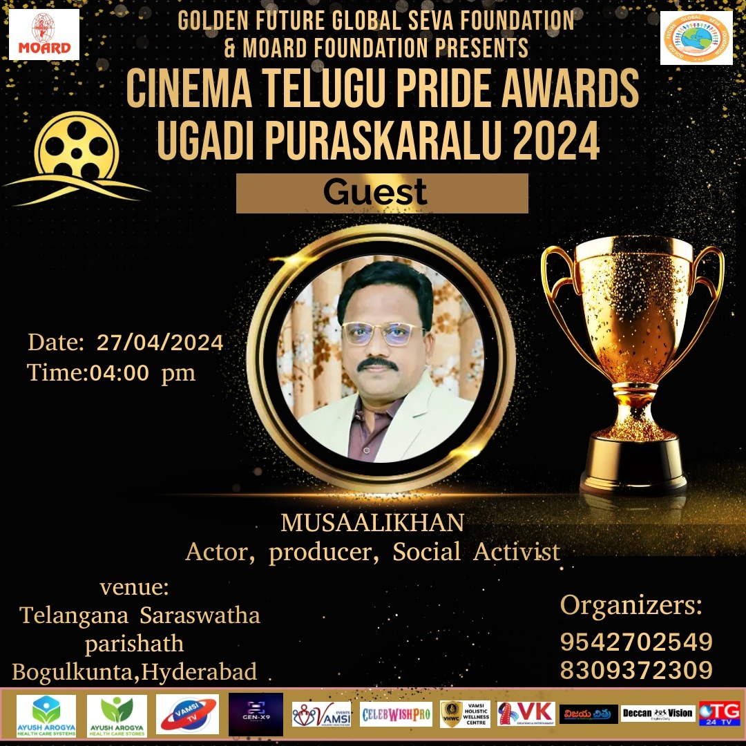 ఉగాది జాతీయ పురస్కారాలు.సంగీతం, నృత్యం, సాహిత్యం,విద్య, వైద్య,న్యాయవాద, టీవీ, సినీ రంగం, రాజకీయ రంగం, సామాజిక సేవ, వ్యాపార, పారిశ్రామిక, క్రీడా,కళా రంగం, జ్యోతిష్యం, వాస్తు, అర్చక, పురోహిత, తదితర రంగాల నుండి అవార్డులు ఇస్తున్న నిర్వాహకులకు కృతజ్ఞతలు తెలియజేశారు.భవిష్యత్తులో మాపై ఇంకా మరిన్ని బాధ్యతలు సేవా కార్యక్రమాలు చేసేందుకు మాకు ఈ కార్యక్రమాలు దోహద పడతాయని ఇంకా సేవా గుణాన్ని మెరుగు పరుచుకోని సమాజ సేవలో మరింత. చురుగ్గా పాల్గొంటామని మూసా ఆలీ ఖాన్ తెలియజేశారు. నన్ను ఎంతగానో ప్రోత్సహిస్తున్న పత్రికా ప్రతినిధులకు ఎలక్ట్రానిక్ మీడియా మరియ సినిమా జర్నలిస్టులకు నాతోటి సినీ కళాకారులకు నన్ను వెన్నంటి ప్రోత్సహిస్తున్న నా మిత్రులకు హృదయ పూర్వక కృతజ్ఞతలు తెలియజేశారు.