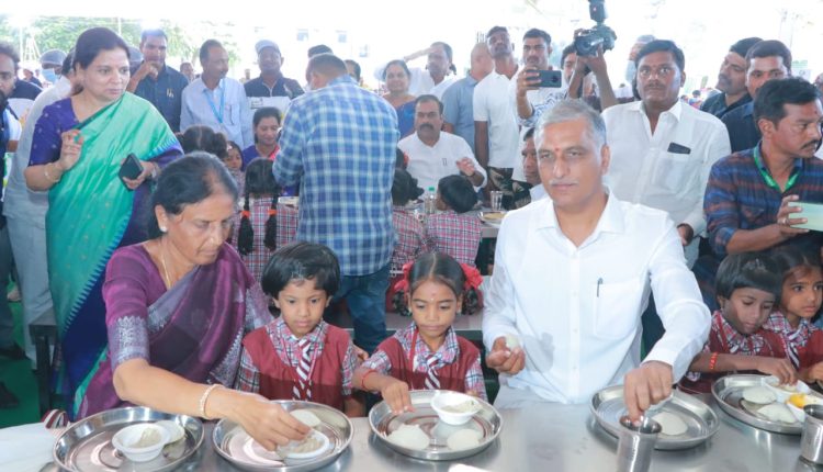 ఈ సందర్భంగా మంత్రి హరీష్ రావు మాట్లాడుతు రాష్ట్రవ్యాప్తంగా 23 లక్షల మంది విద్యార్థులకు అల్పాహార పథకం అమలు చేస్తున్నామని, 27,147 పాఠశాలల్లో సీఎం అల్పాహార పథకం అమలు జరుగుతున్నది తేలిపారు.ఈ కార్యక్రమములో ఎంపీలు రంజిత్ రెడ్డి, పాటిల్ ,ఎమ్మెల్సీలు శంభిపూర్ రాజు ,దయనంద్ గుప్తా ,రఘోత్తమ్ రెడ్డి ,ఎమ్మెల్యేలు కాలే యాదయ్య ,ఫైళ్ల శేఖర్ రెడ్డి , ఎడ్యుకేషన్, వెల్ఫేర్ ఇన్ఫ్రాస్ట్రక్షర్ డెవలప్మెంట్ కార్పొరేషన్ చైర్మన్ రావుల శ్రీధర్ రెడ్డి, విద్యా శాఖ సెక్రెటరీ వాకాటి కరుణ ,పాఠశాల విద్య డైరెక్టర్ దేవసేన ,యువ నాయకులు కార్తీక్ రెడ్డి,తదితరులు పాల్గొన్నారు.