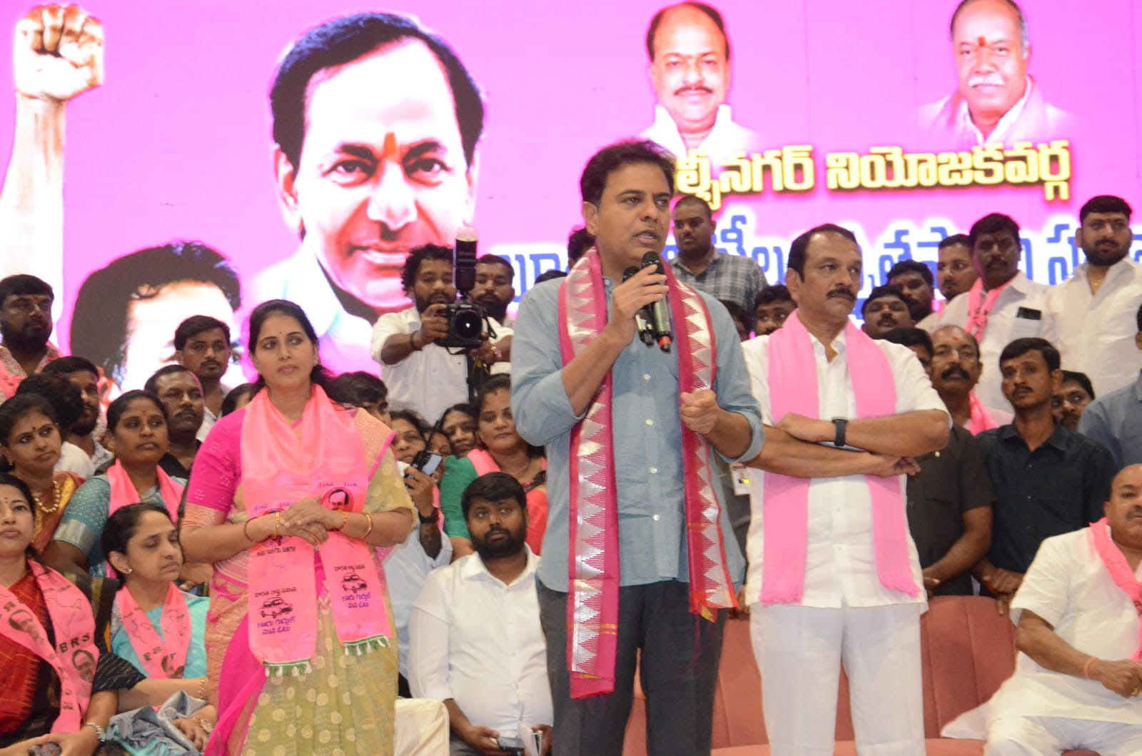 రాష్ట్ర ప్రభుత్వం అన్ని రంగాల్లో తెలంగాణ రాష్ట్రాన్ని అభివృద్ధి చేసి దేశంలో ఇతర రాష్ట్రాలకు దిక్సూచిగా మారిందని రాష్ట్ర ఐటీ, పురపాలక శాఖ మంత్రి కల్వకుంట్ల చంద్రశేఖర రావు అన్నారు. హస్తినపురం డివిజన్ పరిధిలోని జీ.ఎస్.ఆర్.గార్డెన్స్ లో అసెంబ్లీ ఎన్నికల నేపథ్యంలో బూత్ కమిటీ కో ఆర్డినేటర్లు, బూత్ కమిటీ సభ్యుల సమావేశం జరిగింది. ఎల్.బి.నగర్ శాసనసభ్యులు దేవిరెడ్డి సుధీర్ రెడ్డి అధ్యక్షతన జరిగిన ఈ కార్యక్రమానికి ముఖ్య అతిథిగా తెలంగాణ రాష్ట్ర మున్సిపల్ శాఖ మంత్రి కేటీఆర్ హాజరై మాట్లాడారు. ఈ సందర్భంగా కేటీఆర్ మాట్లాడుతూ.. క్షేత్రస్థాయిలో బూత్ కమిటీల బాధ్యత కీలక మన్నారు. వచ్చే ఎన్నికల్లో బూత్ కమిటీ కో ఆర్డినేటర్లు, బూత్ కమిటీ సభ్యులు కీలకం గా వ్యవహరించాలని సూచించారు. బిఆర్ఎస్ పార్టీ గెలుపు లక్ష్యంగా ప్రతి ఒక్కరు కృషి చేయాలన్నారు. ప్రతి ఇంటికి ప్రతి గడపకు వెళ్లి ప్రభుత్వ సంక్షేమ అభివృద్ధి కార్యక్రమాలు వివరించాలన్నారు. బిఆర్ఎస్ పార్టీ మేనిఫెస్టోను చేసిన అభివృద్ధి సంక్షేమ పథకాల కార్యక్రమాలను వివరించి కారు గుర్తుకు ఓటు వేయాలని కోరాలని సూచించారు. ప్రతి ఒక్కరు ఆప్యాయంగా ఓటర్లను పలకరించి చైతన్యపరిచి బిఆర్ఎస్ పార్టీ కారు గుర్తుకు ఓటేసి సుధీర్ రెడ్డి గెలుపుకై 30 రోజులు కష్టపడితే.. ఐదు సంవత్సరాలు ఎల్.బి.నగర్ నియోజకవర్గాన్ని అభివృద్ధి పదంలో తీసుకెళ్దామన్నారు.